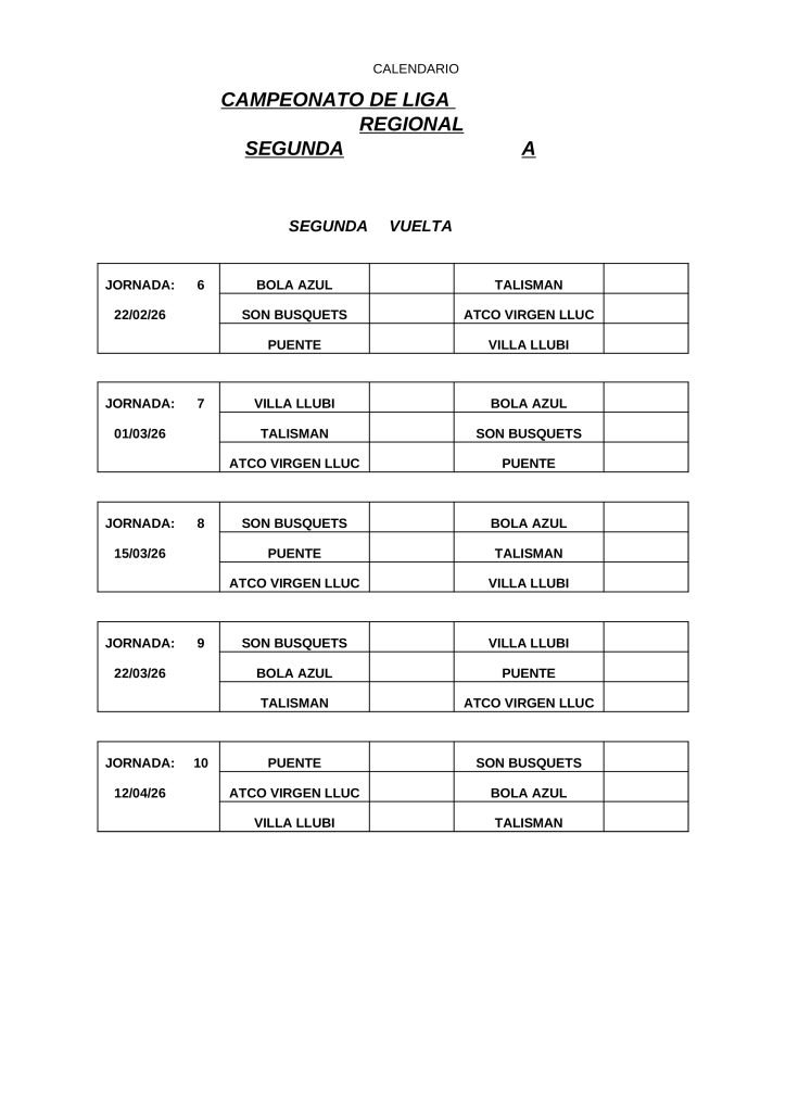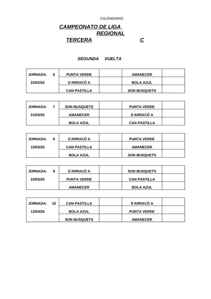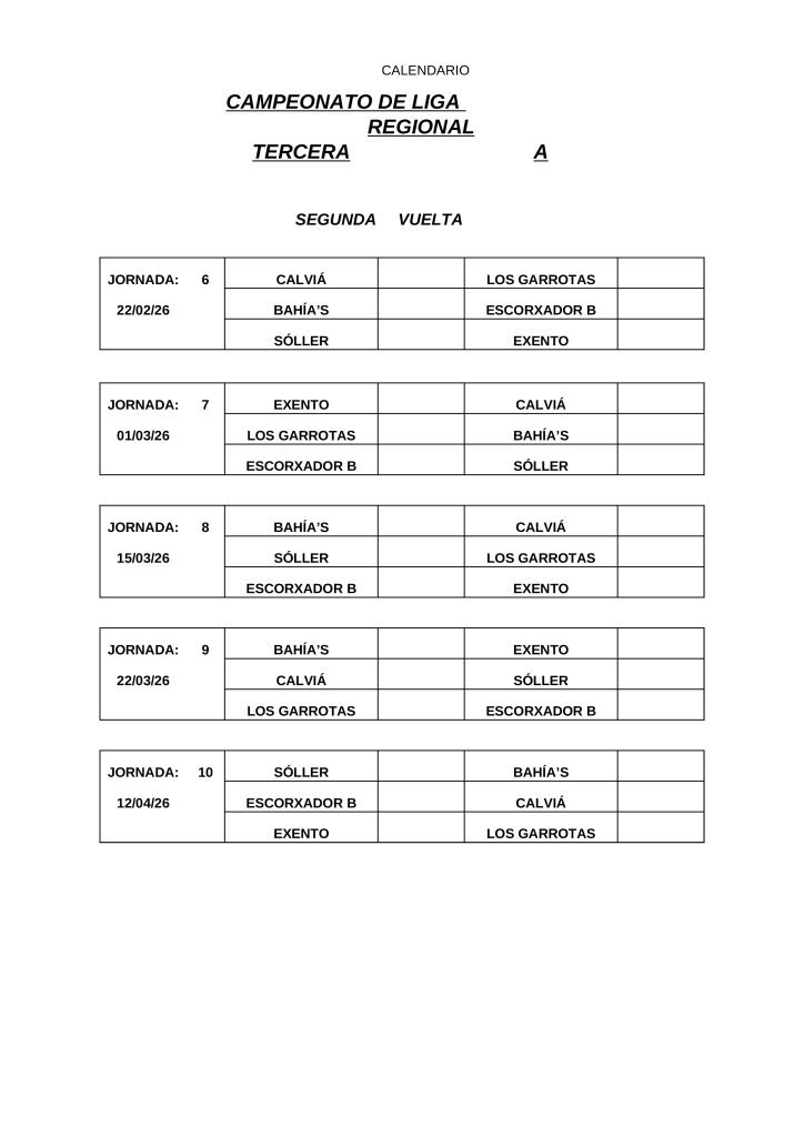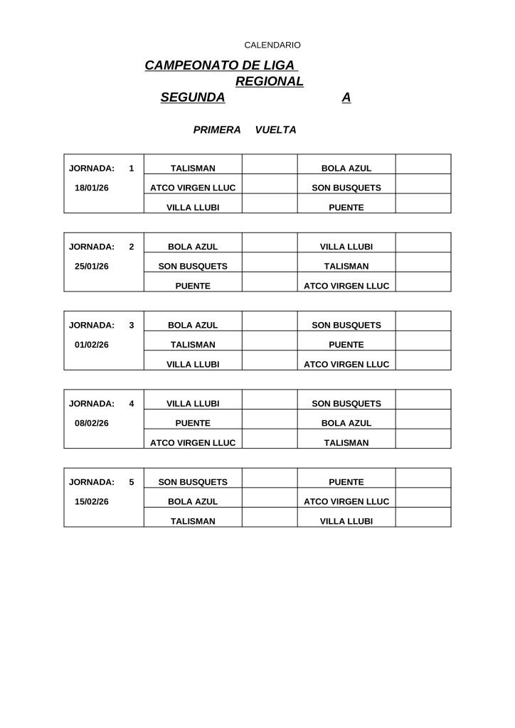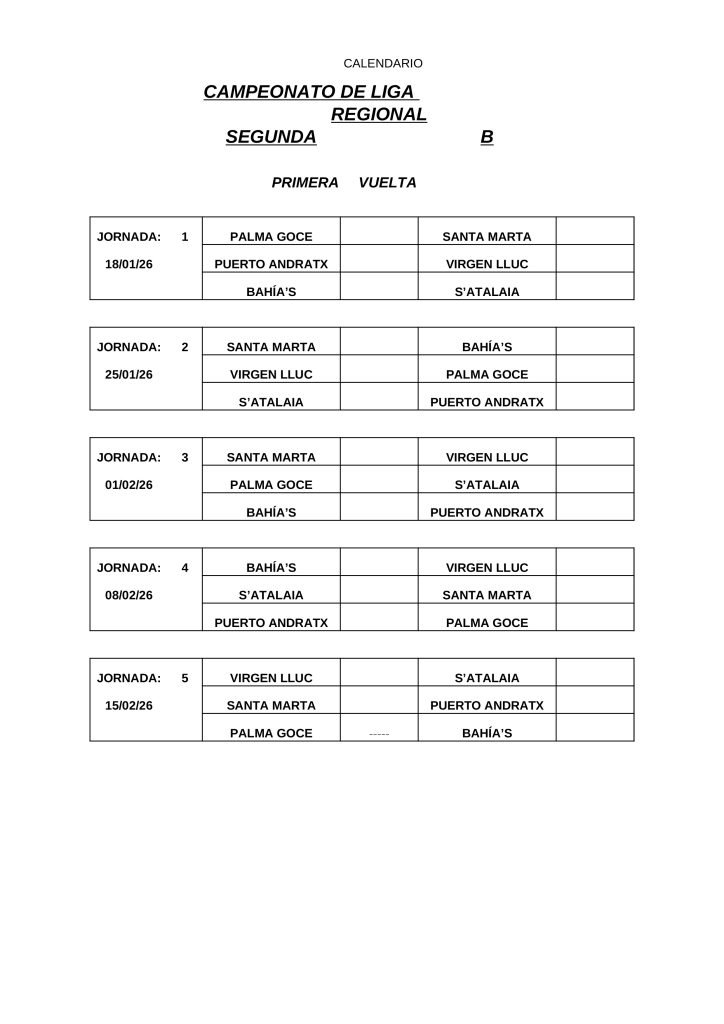 • CALENDARIOS DE LIGA REGIONAL 2026