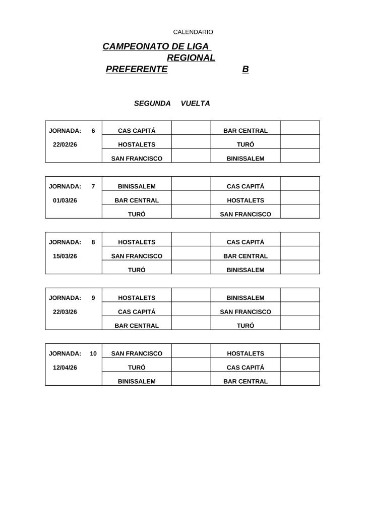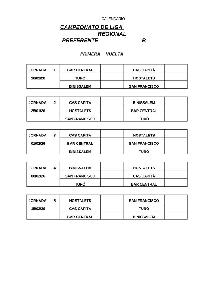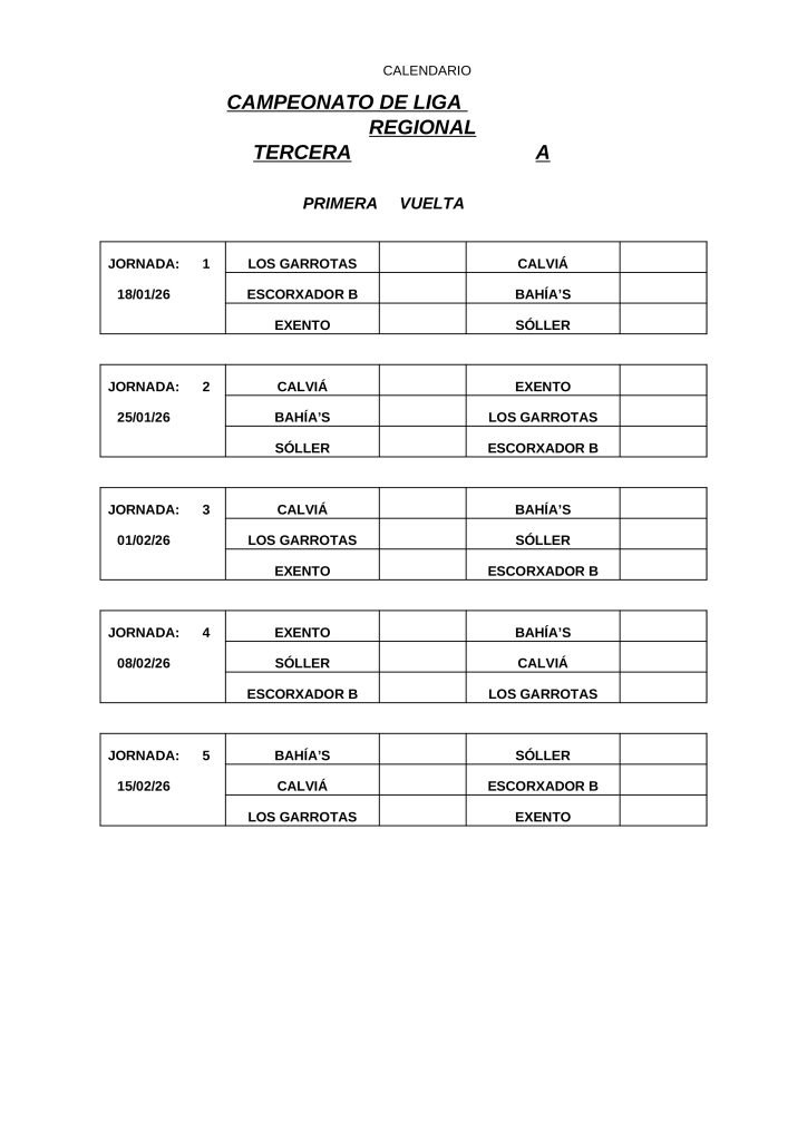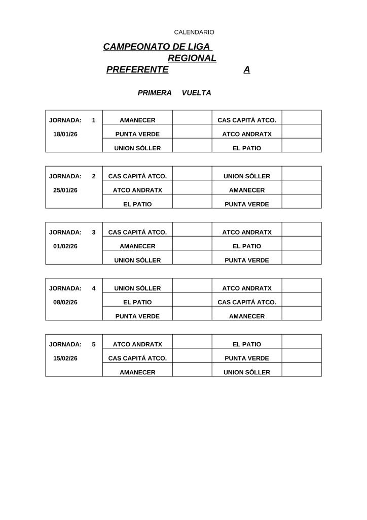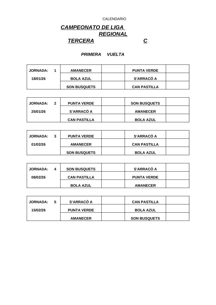• CALENDARIOS DE LIGA REGIONAL 2026